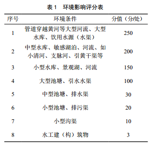 (5)環(huán)境影響評分見(jiàn)表 1。