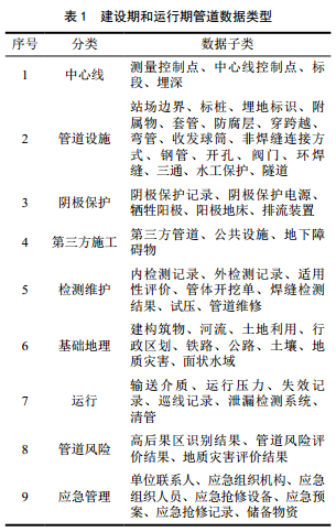 管道高后果區兼具管道和高后果區的屬性,其中涉及管道的數據參數包括管材、管徑、壁厚、管道中心線(xiàn)、安裝施工、無(wú)損檢測、內/外檢測、陰極保 護、三樁、第三方設施、管道修復、地質(zhì)災害等,涉及高后果區的數據參數包括建構筑物、河流、公路、鐵路、易燃易爆場(chǎng)所等。因管道多敷設于地下,根據數據來(lái)源的不同,可將上述數據分為地上數據和地下數據兩類(lèi)。