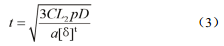 耳板厚度按式(3)計算: