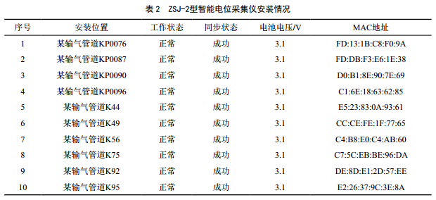 通過(guò)現場(chǎng)調研情況,總共設置了10處智能采集儀安裝點(diǎn),主要集中于山區管段和X湖段,如表 2所示,智能電位采集儀安裝過(guò)程如圖 4所示。