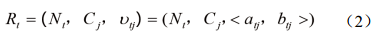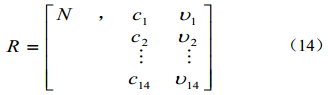 假設物N 具有n 個(gè)特征,即C1, C2,…, Cn,則物N關(guān)于特征Ci對應的量值υi可構成n維物元R,表示如下: