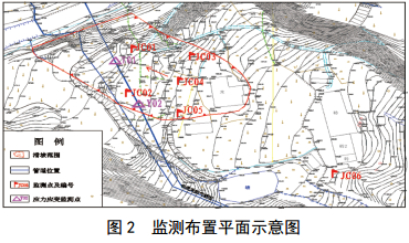 為進(jìn)一步分析、評價(jià)滑坡穩定性,保證搶險現場(chǎng)施工人員安全以及專(zhuān)項處置措施順利實(shí)施,采用了位移監測、管道應力應變監測和非接觸式磁異常檢測等全方位智能管控措施(圖 2)。