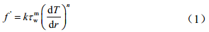式中f' 為蠟沉積傾向系數;為管壁處剪切應力,Pa;為徑向溫度梯度,℃/mm;k、m、n為常數,需要通過(guò)實(shí)驗確定。相應的蠟沉積速率計算公式為: