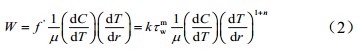 式中W為蠟沉積速率,g/(m2·h);μ為原油黏度,Pa·s;為管壁處蠟晶溶解度系數,10-3/℃。
