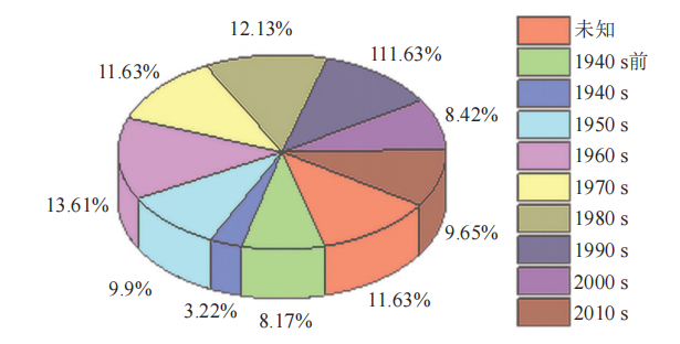 建設年代較早的燃氣管道事故數量略高于建設年代較晚的燃氣管道(圖 2),但總體上不同年代建設的管道其事故所占比例相差不大,說(shuō)明燃氣事故發(fā)生數量與管道新舊程度沒(méi)有太大關(guān)系。