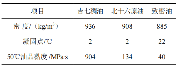 吉七稠油、北十六原油、吉七致密油三種油品物性見(jiàn)表 1。