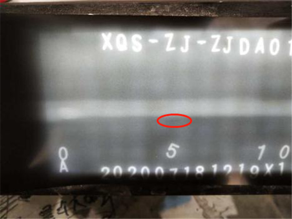 (3)如射線(xiàn)檢測有影像,磁粉檢測沒(méi)有,說(shuō)明缺陷確實(shí)存在,需進(jìn)一步準確定位缺陷點(diǎn),重新出具檢測報告。