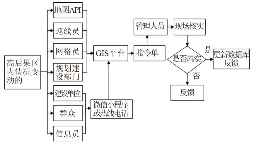 信息采集是高后果區識別的基礎。信息采集內容包括管道屬性、運行參數、檢測維護數據、應急資源信息、環(huán)境數據、人口和周邊建構筑物分布等[10,11],其中環(huán)境數據、人口和周邊建構筑物分布數據變化相對頻繁,其他數據一般變化較小。所有采集到的數據,以圖層化的方式存儲在管道保護GIS平臺中。當管道潛在影響半徑內環(huán)境等數據發(fā)生變化時(shí),可按權限通過(guò)管道保護GIS平臺、微信小程序端口或管道保護熱線(xiàn)電話(huà)反饋情況。接到數據庫修改申請后,平臺統一生成并派發(fā)指令單,由相關(guān)管理人員核實(shí)并反饋情況,調整更新管道高后果區數據庫。此外,平臺通過(guò)高德地圖api接口[12]定期收集管道潛在影響半徑內住宅、特定場(chǎng)所和易燃易爆場(chǎng)所的變化,由相關(guān)人員核實(shí)后更新數據,具體流程詳見(jiàn)圖 1。高后果區數據錄入界面如圖 2所示。