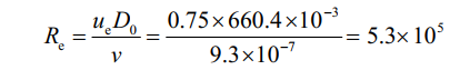 (1)基于St和Re函數關(guān)系,已知ue為0.75 m/s;Do為0.6604 m;海水的運動(dòng)黏度ν為9.3×10-7 m2/s,則:
