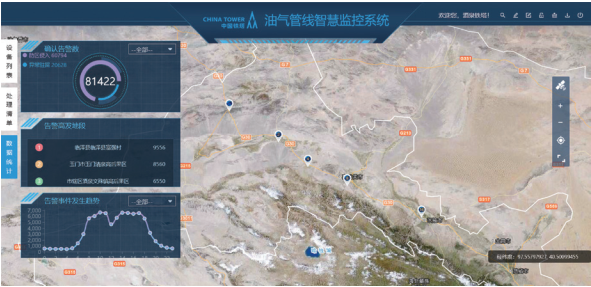 酒泉輸油氣分公司地處“河西走廊”,主要負責管轄西氣東輸一、二、三線(xiàn)管道,鄯蘭原油管道、烏蘭成品油管道及油氣分輸支線(xiàn)共15條管道,總長(cháng)度達4000多公里。長(cháng)期以來(lái),油氣管道日常巡護主要以人工徒步巡查方式為主,耗時(shí)長(cháng)、效率低,且野外地形復雜,一些“巡檢盲區”難以通行;管道周邊常有地質(zhì)災害、第三方施工等瞬時(shí)發(fā)生的安全風(fēng)險;人口密集型高后果區多,稍有不慎就有可能造成嚴重后果。以傳統的人力巡護方式已無(wú)法適應快速變化的外部安全風(fēng)險挑戰。2019年以來(lái),分公司依托河西走廊內中國鐵塔架設遠距離(覆蓋半徑2 km)高清攝像機,通過(guò)采用人工智能監控技術(shù),較好地解決了這一難題。