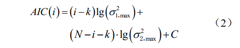 式中:N為信號數據長(cháng)度(采樣點(diǎn)數),k為AR過(guò)程階數,i為2個(gè)局部統計時(shí)段的分界點(diǎn),σ22,max和σ21,max為2個(gè)局部統計時(shí)段的擬合誤差,C為常數。