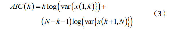 AIC法是對AR過(guò)程給定階數的統計模型進(jìn)行估計,試圖檢測最適合觀(guān)測數據的最低階數。它是衡量估計統計模型的復雜性和優(yōu)越性的標準,建立在熵的概念基礎上,從信息論和極大似然原理導出的,在振動(dòng)信號數據波至時(shí)間拾取中用來(lái)確定兩種不同平穩序列的分界位置[6]。
