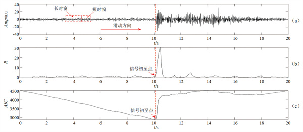 (a)原始信號 (b) STA/LTA法 (c) AR-AIC法