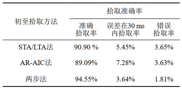 表 1 不同初至拾取方法準確率對比