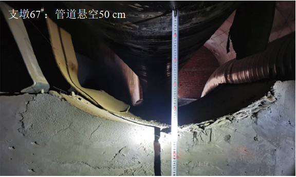 圖 1 管道軸線(xiàn)位移及洞口管道懸空
