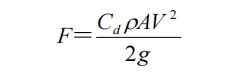 式中: F為水流作用力,kg; Cd為圍油欄圍控形狀系數,取值為2;ρ為水的密度,kg/m3;A為圍油欄水面下總面積在垂直流速方向上的投影面積,m2;V為河流表面平均流速,m/s;g為重力加速度,m/s2。