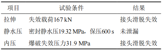 表 2 機械連接件拉伸、靜水壓、內壓試驗結果