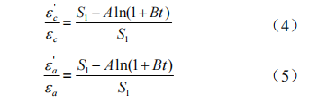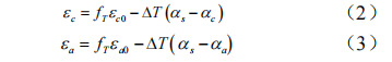 對復合材料進(jìn)行修正后環(huán)向許用應變ε'c 和軸向許用應變ε'α分別為: