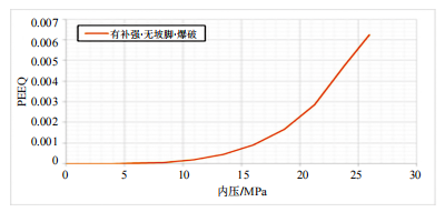 (2)在爆破壓力試驗中,如果沒(méi)有補強,13.46 MPa內壓下缺陷塑性應變突變,管道爆破;但是在復材套筒的增強下,缺陷塑性應變只有0.02%,非常安全;在壓力達到23.84 MPa時(shí),管道發(fā)生整體爆破,但缺陷內部的應變也遠遠沒(méi)有達到爆破塑性應變。說(shuō)明復材套筒對缺陷鋼管起到了有效的補強作用。