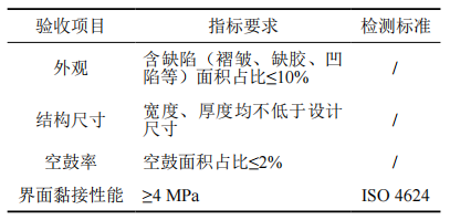 提出復材套筒修復施工質(zhì)量驗收指標,包括外觀(guān)、結構尺寸、空鼓率及界面黏接性能,用以指導現場(chǎng)施工,控制修復結構施工質(zhì)量,如表 2所示。
