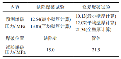 表 3 含缺陷鋼管與修復鋼管的爆破壓力對比
