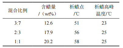 表 1 混合原油含蠟量和析蠟點(diǎn)