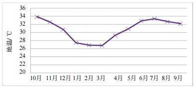 管道所在區域地溫全年維持在26℃以上,其中12月至次年4月溫度偏低,其他月份均在30℃以上,如圖 2所示。