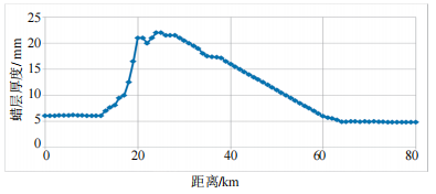 2.2  管道沿線(xiàn)結蠟厚度分布