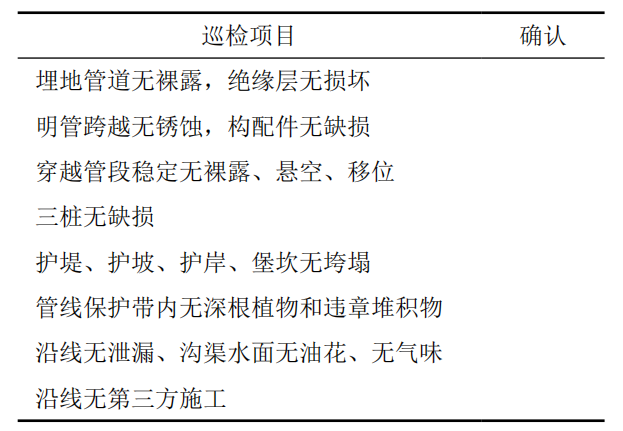 每個(gè)巡檢關(guān)鍵點(diǎn)設置巡檢注意項(表 1),一線(xiàn)巡線(xiàn)工到達關(guān)鍵點(diǎn)時(shí)移動(dòng)APP彈出巡檢注意項,需逐項核對消除,發(fā)現異常情況做好記錄并及時(shí)上報管段長(cháng)或部門(mén)技術(shù)員。