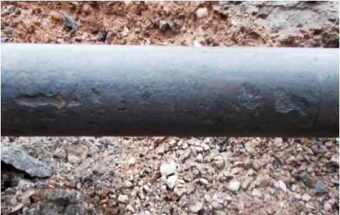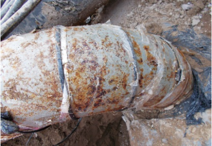 上述兩個(gè)缺陷點(diǎn)產(chǎn)生的原因主要是管道無(wú)防腐層、防腐方式及保溫方式選擇不當造成局部破損,外加無(wú)陰極保護設施進(jìn)而產(chǎn)生大氣腐蝕(無(wú)保溫層)、保溫層下腐蝕、土壤腐蝕、雜散電流腐蝕等外部腐蝕減薄。