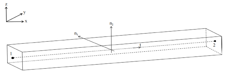 如圖 2所示,精確設計梁的擺放位置需要確定梁截面的三個(gè)方向,  其中n1、n2代表梁的橫截面位置, t代表梁的軸線(xiàn)方向。