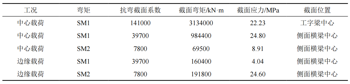 表 3 單位載荷龍門(mén)架截面應力及其分布