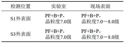 表 1 實(shí)驗室和現場(chǎng)表面金相檢測結果對比
