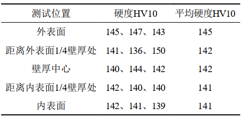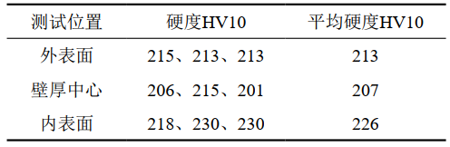 表 2 低強度X70三通硬度測試結果