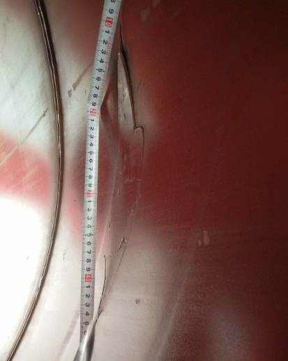 西部管道在引進(jìn)國內外承包商隊伍開(kāi)展管道檢測過(guò)程中,加強與國內院校的聯(lián)合科研攻關(guān),研制出OD 1219 mm輸氣管道全方位三軸超高清漏磁內檢測裝置,包括OD 1219 mm的一系列的弱磁應力內檢測裝置,實(shí)現成果轉化。應用該裝置,在2015年5月發(fā)現西二線(xiàn)連木沁出站OD 1219 mm管道螺旋焊縫裂紋(圖 1)并進(jìn)行了換管。