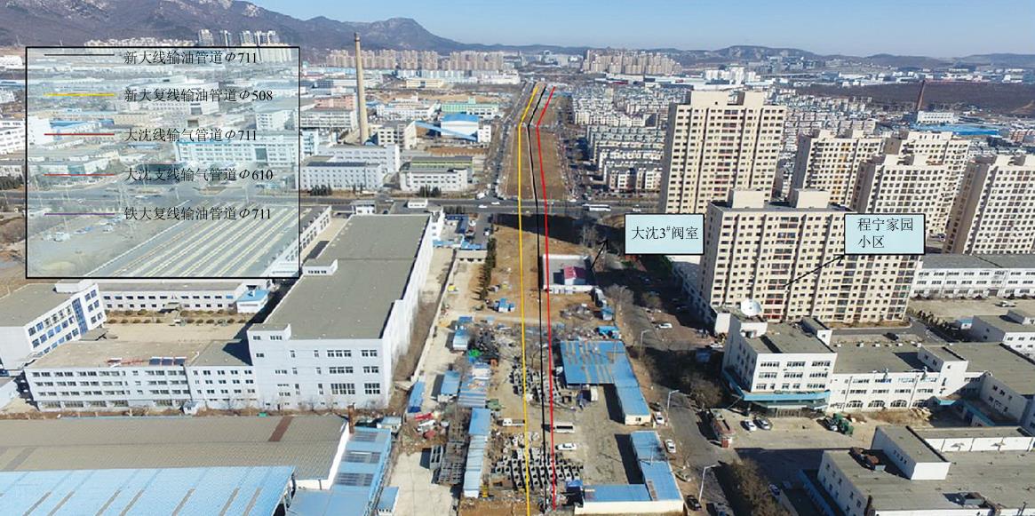(1)將高后果區安全管理寫(xiě)入法律。隨著(zhù)管道線(xiàn)路的逐漸延長(cháng),管道安全保護與城市建設發(fā)展之間的矛盾日益凸顯。如大沈線(xiàn)天然氣長(cháng)輸管道有15.9公里穿過(guò)大連市金普新區城市建成區,周邊工廠(chǎng)、學(xué)校、社區、商業(yè)網(wǎng)點(diǎn)林立,形成人員密集型高后果區,一旦發(fā)生泄漏爆炸后果不堪設想(圖 1)。雖然政府有關(guān)部門(mén)提出“控制增量,管好存量”的要求,但實(shí)施效果并不理想。由于高后果區管理涉及到國土空間規劃,城市規劃部門(mén)審批管道周邊新建項目缺乏法律依據,一般都比照管道工程設計規范關(guān)于管道與建構筑物距離不小于5米的規定,顯然不能滿(mǎn)足當前城市安全發(fā)展的需要。