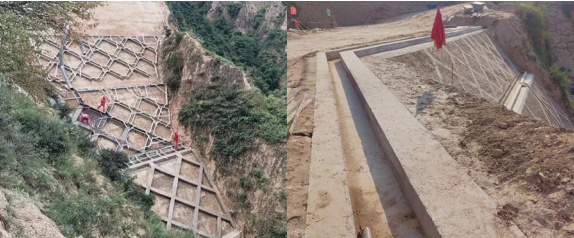 (2)崾峴治理工程要嚴格按照設計文件及施工規范要求施工,嚴把夯填、菱形骨架、混凝土擋墻質(zhì)量關(guān),落實(shí)施工、監理現場(chǎng)管控措施,確保施工質(zhì)量合格。