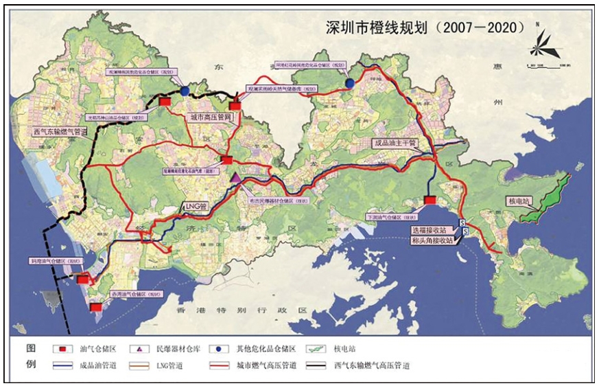 (1)首次提出城市“橙線(xiàn)”概念。為降低城市重大危險設施的風(fēng)險水平,深圳市城市規劃委員會(huì )2009年第一次會(huì )議原則審批通過(guò)深圳市橙線(xiàn)規劃(2007—2020)。城市“橙線(xiàn)”是對全市重大危險設施周邊區域的土地利用和建設活動(dòng)進(jìn)行引導或限制的安全防護范圍的控制界線(xiàn)。其中結合油氣長(cháng)輸管道實(shí)際情況,將油氣長(cháng)輸管道周邊區域的安全防護范圍分為控制區、限制區、影響區?刂茀^范圍內除市政設施、交通設施(專(zhuān)指道路及場(chǎng)地,不包括建筑)外,禁止規劃建設其它設施;限制區范圍內除影響區禁止規劃建設的設施外,不得規劃建設住宅、宿舍、私人自建房、商業(yè)、商務(wù)公寓、大型廠(chǎng)房 、研發(fā)用房、辦公、其他配套輔助設施;影響區范圍內不得規劃建設幼兒園(托兒所)、游樂(lè )設施、文化設施、文化遺產(chǎn)、體育設施、醫療衛生設施、教育設施、宗教設施、社會(huì )福利設施、特殊建筑。由于“橙線(xiàn)”劃定涉及社會(huì )多個(gè)方面,推進(jìn)過(guò)程中難免存在各種利益沖突,有許多矛盾和問(wèn)題需要解決,但仍不失為一種大膽和有益的探索(該規劃已過(guò)有效期,目前已失效)。