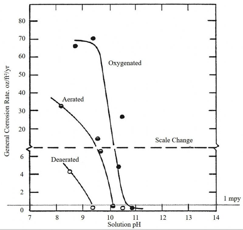 二是管道穿越墻體界面富氧環(huán)境導致腐蝕速率加快。管體穿越墻體界面處環(huán)境的氧含量要高于土壤側,同時(shí)界面位置處受到排污暗渠內污水、倒灌海水等影響濕度高,由于O2為強去極化劑,同時(shí)又有水分存在,腐蝕速率會(huì )大大加快, O2含量對金屬腐蝕電位和腐蝕速率的影響如圖 7所示。