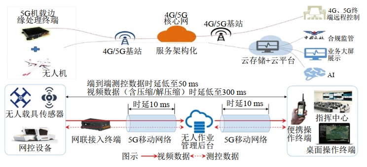 (2)技術(shù)要點(diǎn)。5G移動(dòng)網(wǎng)絡(luò )超高帶寬、超低時(shí)延的端到端數據通訊,保障了無(wú)人裝備控制和遠程即時(shí)交互滿(mǎn)足工業(yè)現場(chǎng)級互聯(lián)要求,測控數據時(shí)延低至50 ms,視頻數據時(shí)延低至300 ms。統一的無(wú)人化數據管理,將系統分為裝備、資源、作業(yè)任務(wù)三個(gè)層次,對各種無(wú)人載具、傳感載荷以及執行載荷統一管理,協(xié)調作業(yè)區域/路線(xiàn)、資源,避免發(fā)生沖突。便捷的遠程操控,使無(wú)人機運行數據和實(shí)時(shí)畫(huà)面通過(guò)專(zhuān)用APP便捷地分發(fā)到其它遠程跨專(zhuān)業(yè)和跨地域人員的計算機、手機等終端,隨時(shí)隨地獲得專(zhuān)家指導和遠程協(xié)助(圖 2)。