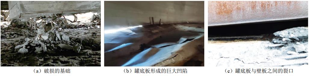 圖 2 儲油罐基礎破損及裂口狀況現場(chǎng)圖