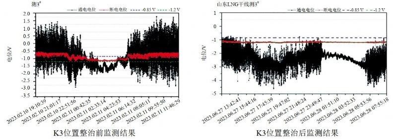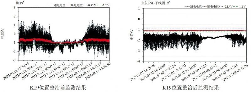 圖 2 雜散電流整治前后管道電位數據