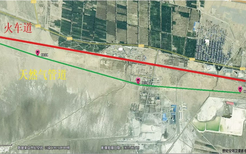 圖 1 天然氣管道與鐵路位置