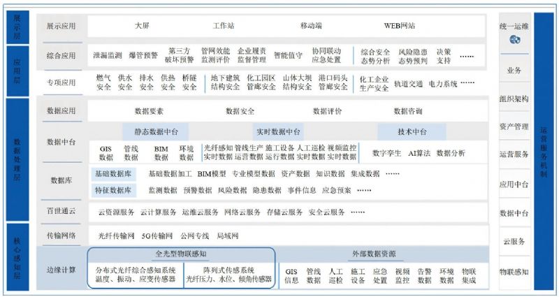 該一體化平臺主要由核心感知層、數據處理層、應用層、展示層組成(圖 2),具備從接收預警→隱患確認→視頻會(huì )議→應急預案→工單下發(fā)→定位導航→監督執行→完工驗收→報警復位等能力,讓風(fēng)險管理形成閉環(huán),實(shí)現“主動(dòng)管理、防災減災”的效果。