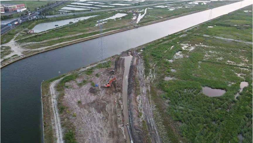 成立專(zhuān)家組,組織業(yè)主單位、設計單位、監理單位、施工單位,對南側地區進(jìn)行現場(chǎng)考察,綜合考慮二次回拖的場(chǎng)地,重新設置返回拖預制管道的路由(圖 2)。