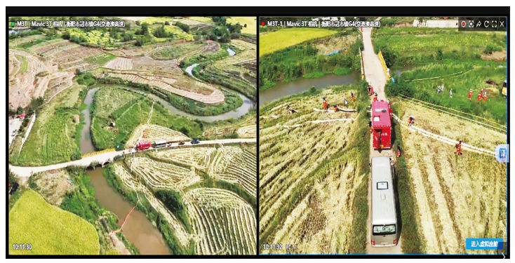 多架無(wú)人機依據預設程序自動(dòng)執行巡飛與直播任務(wù),將視頻實(shí)時(shí)回傳至指揮大屏,指揮人員能夠全面掌握人員分布、作業(yè)進(jìn)度與風(fēng)險演變,從而更準確地預判事態(tài)趨勢,實(shí)施資源調配與戰術(shù)部署。一旦發(fā)現異常情況,指揮中心可借助無(wú)人機視角迅速識別,并通過(guò)平臺快速調度相關(guān)小組進(jìn)行協(xié)同處置,極大提升了整體作業(yè)效率與現場(chǎng)安全性。