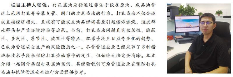 (2)加快技防措施的實(shí)施與應用。針對目前防范打孔盜油很難實(shí)現24小時(shí)監控的現狀,在管道重點(diǎn)道口、敏感區域安裝固定式視頻監控設備,并與地方公安聯(lián)網(wǎng),通過(guò)技術(shù)手段及早發(fā)現打孔盜油跡象或者及時(shí)消除打孔盜油隱患。利用一切有利條件,對易發(fā)打孔盜油的重點(diǎn)管段開(kāi)展防腐層檢漏工作,查找預埋盜油點(diǎn),條件允許的情況下,還可通過(guò)發(fā)送專(zhuān)項檢測器,排查是否還存在預留打孔盜油閥門(mén)或支管。
