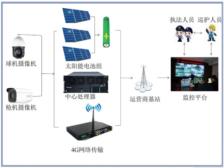 通過(guò)4G網(wǎng)絡(luò )無(wú)線(xiàn)組網(wǎng),利用一體化離線(xiàn)太陽(yáng)能供電系統持續提供穩定電源,大幅降低了設備維護成本。根據地形特征,監控立桿高度6~12米不等,儲供電裝置由3組120W60A太陽(yáng)能板和鋰電池組構成,可保障設備連續工作120小時(shí)。系統采用的攝像機具備23倍光學(xué)變焦、400萬(wàn)像素和夜視功能,可在高空360°旋轉,實(shí)現全方位、全天候監控,資料累計存儲時(shí)間達30天以上,同時(shí)具備實(shí)時(shí)監控、目標跟蹤、聲光示警等功能,發(fā)現異常情況,值守人員第一時(shí)間進(jìn)行預判和分析,并通知附近企業(yè)巡線(xiàn)人員前往查證識別。管道執法人員還可以通過(guò)手機實(shí)時(shí)瀏覽管道周邊實(shí)況,及時(shí)處理、轉交異常情況和問(wèn)題。針對大型第三方交叉施工作業(yè),設立臨時(shí)監控點(diǎn),通過(guò)監控系統上傳至監管平臺,配合管道企業(yè)對第三方施工過(guò)程進(jìn)行全程監督,確保第三方施工單位嚴格按照雙方簽訂的《管道防護協(xié)議》文明施工。