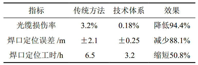 (1)應用驗證。選取國內某天然氣干線(xiàn)管道開(kāi)展工程應用,管徑1219 mm,X80鋼級,開(kāi)挖復拍56道環(huán)焊縫,光纜類(lèi)型GYTA53-24B1,結果表明,光纜防護損傷率降至行業(yè)標桿水平(較原方案下降94%以上); 焊口定位平均誤差≤±0.25 m,單點(diǎn)定位工時(shí)縮短50.8%(表 3)。